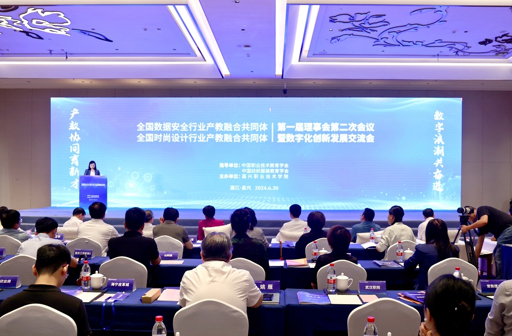 6月30日,全国数据安全、时尚设计行业产教融合共同体第一届理事会第二次会议暨数字化创新发展交流会在浙江嘉兴召开。会议以“产教协同育新才 数字浪潮共奋进”为主题,共同体相关成员单位代表、院校教师和企业负责人200多人现场参会,为新时代全国数据安全、时尚设计行业产教融合发展集众智、聚合力、谋良策。