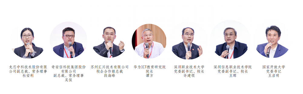 会议还设置了“智能时代:职业教育机遇与挑战”专家圆桌论坛环节。国家开放大学党委书记、校长王启明,深圳职业技术大学党委副书记、校长许建领,深圳信息职业技术学院党委副书记、校长王晖,龙芯中科技术股份有限公司副总裁、学会常务理事杜安利,奇安信科技集团股份有限公司副总裁、学会常务理事吴俣,苏州汇川技术有限公司校企合作部总裁段海峰,华为ICT教育研究院院长谭方,从技术、产业、教育三重视角,聚焦产教协同、课程重构、人才适配等维度,围绕“产教协同与人才需求匹配”“教学改革与AI风险防控”“终身学习与教育普惠”三大议题分享了真知灼见。