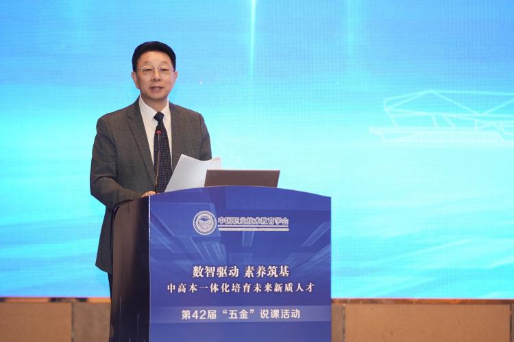 鲁昕会长作题为《落地行动计划 建设教育强国》的主旨报告。报告围绕贯彻落实《教育强国建设规划纲要(2024-2035年)》,剖析了建设教育强国中职业教育的新定位与新使命。报告指出,中等职业教育是高等职业教育的基础,要聚焦“少而精”办好中等职业教育,统筹推进育人方式、办学模式、管理体制、保障机制改革。要以本次“五金”说课活动为平台,共同探讨贯通培养新模式,助力实现“人人皆可成才、人人尽展其才”美好愿景。要以就业能力提升“双千”计划为抓手,对标数字职业新要求,以AI大模型、数字孪生、边缘计算、具身智能四项新技术,嵌入并一体化推进中专本专业设置,重构学生技能结构、能力结构,培养适应新质生产力发展的数字技术工程师,为建设教育强国贡献中等职业教育力量。